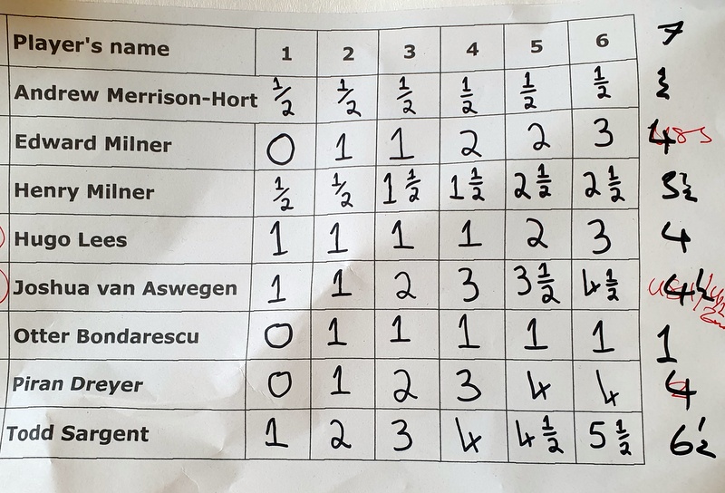 1st: Joshua van Aswegen 4½/7 2nd= Hugo Lees & Edward Milner 4/7